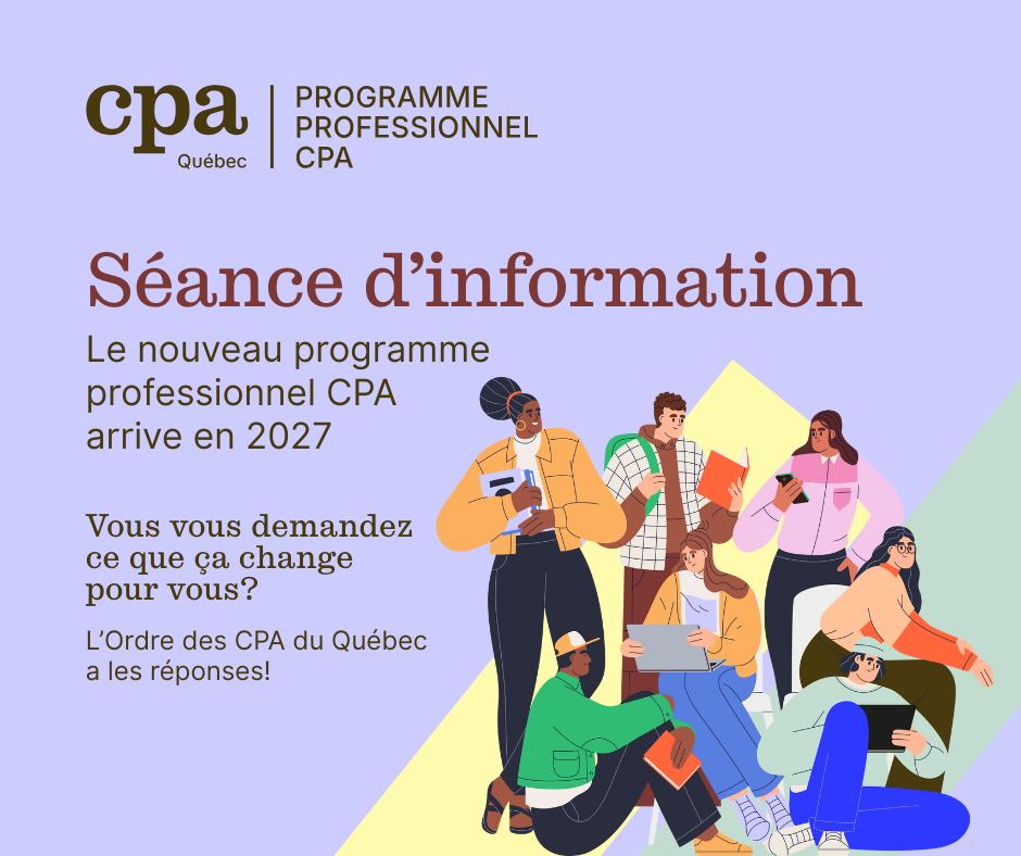 Vous souhaitez en apprendre plus sur le nouveau programme professionnel CPA? L’Ordre des CPA du Québec sera présent à l’UQTR ce vendredi 19 septembre à 11h30, au local 4020 Ringuet, pour vous présenter les nouveautés et répondre à toutes vos questions.